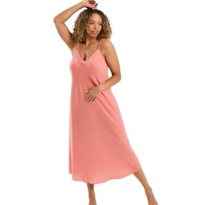 Indigo Sky Samsara Long Satin Chemise Nightdress, Coral Rose, 16 18