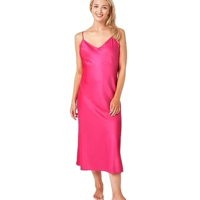 Indigo Sky Samsara Long Satin Chemise Nightdress, Hot Pink IS, 16 18