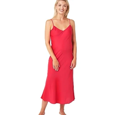 Indigo Sky Samsara Long Satin Chemise Nightdress, Red IS, 20 22