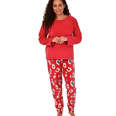 Indigo Sky Women's Gemma Cosy Fleece Cuffed Pyjama, Kira Animal Red, 10 12
