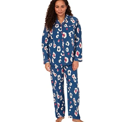 Indigo Sky Women's Luella 100% Brushed Cotton Wincyette Pyjama, Blue Kira Animal, 10 12