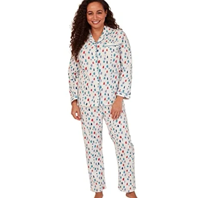 Indigo Sky Women's Luella 100% Brushed Cotton Wincyette Pyjama, Splat Spot Ivory, 8 10