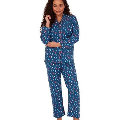 Indigo Sky Women's Luella 100% Brushed Cotton Wincyette Pyjama, Splat Spot Ocean Blue, 10 12