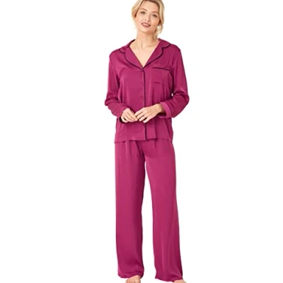 Indigo Sky Womens Astara Full Length Satin Pyjama With Contrast Piping, Magenta, 14 16