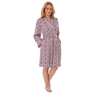 Indigo Sky Womens Chantal Printed Woven Satin Short Kimono Robe, Ruby, 10 12