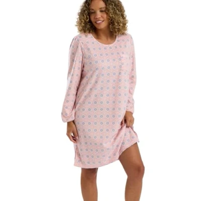 Indigo Sky Womens Loulou Light & Warm Fleece Nightshirt Cosy Printed Loungewear Nightdress with Long Sleeves Pocket, Pink, 12 14