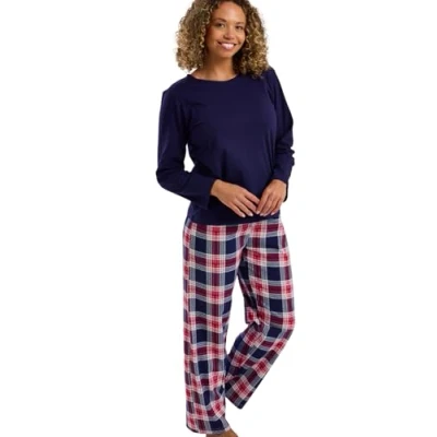 Stylish Top Design – Cosy long sleeved loungewear top with round neckline with a check print back neck trim for a touch of detail. Classic Check Print Pants – Full-length knitted pure cotton pyjama bottoms with a timeless check pattern & stretchy waistband 100% Pure Cotton – Soft, breathable, and naturally comfortable for all-night wear. Colour Options – Choose from vibrant cerise or elegant navy to suit your style. Comfortable, Stylish & Practical – Machine washable for everyday use.