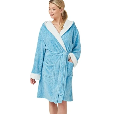 Indigo Sky Womens Toyah Hooded Cosy Sherpa & Marl Fleece Robe, Duckegg, S