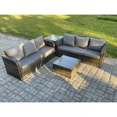 Indoor Outdoor Rattan Garden Furniture 6 Seater Set Table Sofa Chair Patio Conservatory with Grey Cushions Side Fimous