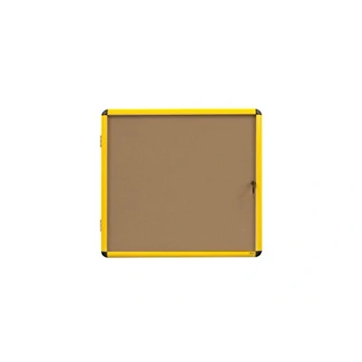 EurofficeBi-Office Ultrabrite Display Case; Cork Surface; Lockable Acrylic Door; Yellow Aluminium Frame; 940x981mm - 12x A4