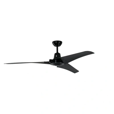 General description The Vourdries Black Industrial Ceiling Fan combines style and functionality, featuring a sleek black design that complements any modern decor. It is equipped with a remote control for convenient operation, allowing you to adjust the fan settings effortlessly. Technical specifications Diameter: 142 cm / 56" Housing colour: black Blade colour: black Blade material: synthetic for improved air flow Power consumption (motor): max. 57 Watt Dimensions (ceiling to blades): 38 cm / 15" (can be shortened to 28 cm / 11") Diameter of canopy: 13 cm / 5" Maximum ceiling pitch: 38° Usage Remote control operation (motor off, 3 rotation speeds) Forward and reverse function for summer and winter modes via slide switch on the housing Designed for smooth and quiet operation with high-quality ball bearing