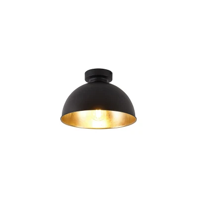 QAZQA Industrial Ceiling Light Black with Gold 28 cm - Magnax The Magnax Ceiling Light is a real eye-catcher in any home! This industrial lamp is made of steel. It is black on the outside and gold on the inside, creating a cozy light effect. The lamp has a diameter of 28 cm and a height of 18 cm. The shade has a diameter of 28 cm and a height of 14 cm. The mounting plate has a diameter of 10.5 cm and a height of 2.5 cm. Provide your own beautiful light source for the fixture, to make the lamp truly shine! The light source must have an E27 fitting (max. 60W) to fit in the fixture. To create some extra atmosphere, you can connect the lamp to a dimmer, but note that this is not included. Give your interior an industrial look and a warm glow! Bulb holder: E27 . Max 1 x 60 W, 230 V Suitable for: Incandescent, Halogen, Energy saving, Led Connecting voltage: 220V/230V Protection class: IP20 Dimmable, dimmer not included,No, without cord and plug Lightsource: Exclusive The QAZQA Industrial