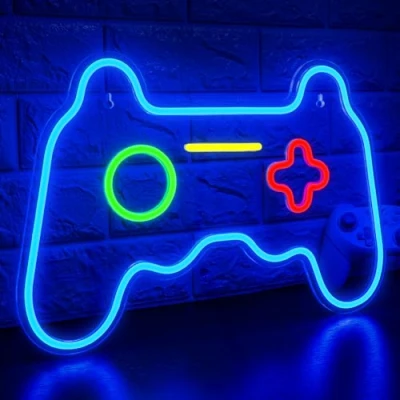 Neon light sign in the shape of a game console: Our neon sign in the shape of a game controller has three colours, with blue being the dominant shade.Light up your gaming area and enhance the atmosphere.This led sign is particularly suitable for playroom,game room,playStation,play area,gift for kids and boys Simple installation method: Our gaming neon lights can be installed in 2 ways. We recommend using the hooks and chains provided to hang the neon signs in any desired location. Installation is quick and easy. You can also place theneon signs for wall on any table to accompany you. Multiple power supply options: Our gaming led signs for wall for game controllers can be powered via a power socket, USB cable, power bank or computer. The rated voltage is 5V/2A, at which voltage the game neon sign achieves its best operating performance.Our gaming sign are safe,quiet and energy-efficient,and are ideal for home use or as gifts. High-quality material: Our gaming led lights are made of high-quality acrylic panels and LED light strips. Compared to traditional glass lights,our neon light offers strong light transmission, clear colours and adjustable brightness,allowing it to achieve the best effects and making it the perfect wall decoration for your gaming room. Worry free customer service: Our game controller neon wall sign includes a sign with 1*USB cable,2*hooks and 1*metal chain. If you encounter any problems after receiving the product, you can let us know and we will solve them for you immediately.