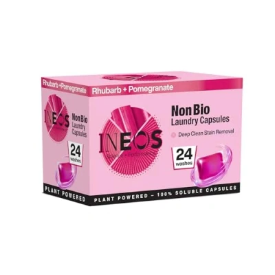 INEOS Non Bio Laundry Washing Capsules, 24 washes, High Performance Stain Remover For Clothes, Plant Powered, Soluble Sensitive Skin, Rhubarb + Pomegranate