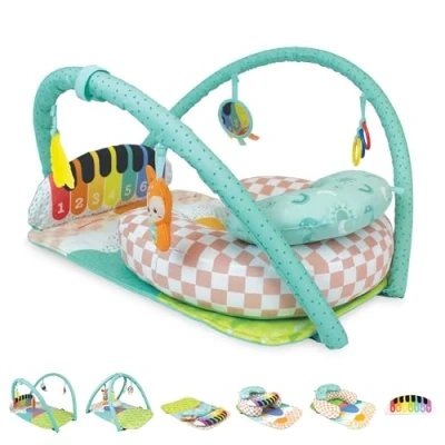 DEVELOPS MUSICAL EAR AND MUSICAL AWAKENING - Our premium activity mat wraps babies in softness, ideal for their sensitive skin and growing little bodies. It's the ideal way to play in complete comfort ! ALL-INCLUSIVE ACTIVITY MAT - Includes play mat, portable musical piano, seat positioner, tummy time cushion and four hanging toys. It entertains babies with seven melodies and 21 fun sounds, plus a composer mode for endless music creation possibilities. FUN LEARNING THROUGH PLAY - Promotes a variety of developmental skills in growing babies, such as sensory exploration, hand-eye coordination, cognitive thinking, and more. The different modes, from infant to toddler, align with essential transition skills. A SAFE AND SECURE SPACE - A C-shaped seat positioner provides stability, allowing your little one to sit confidently during play time and tummy time, while strengthening their back and core muscles neck to finally sit up without help. DESIGNED WITH LOVE - At Infantino, we love babies, we adore children, and we admire their moms and dads. We work hard to create products that guide development and bring joy as baby grows. Happy parents and fulfilled little ones, that’s what drives us!