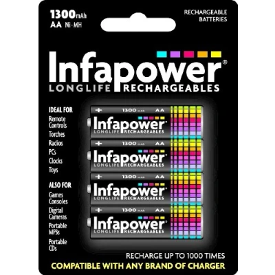 1300mAh Ideal for remote controls, torches, radios, PC's, clocks, toys Also for games consoles, digital cameras, portable MP3's and portable CD's recharge up to 1000 times