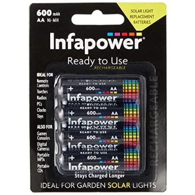 Infapower AA 800mAh Rechargeable Battery Nickel Metal Hydride (NiMH) Battery/Rechargeable (800 mAh, (NiMH), AA, Multicolor, 4 Pieces))