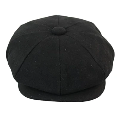 Infinity Leather 8 Panel Newsboy Cap Wool Gatsby Baker Boy Grandad Irish Hat Black 2XL