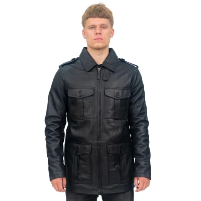 Infinity Leather Men’s Black Casual Parka Safari Multi Pocket Collar Trench Reefer Jacket Coat S