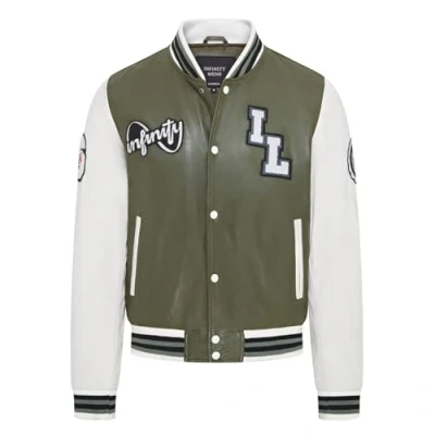 Infinity Leather Mens Baseball Letterman Bomber Jacket Ashwood Green Size Small