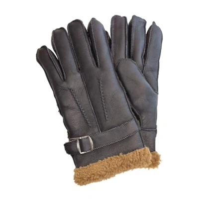Infinity Leather Mens Brown Luxury Sheepskin Gloves With Buckle Size Small