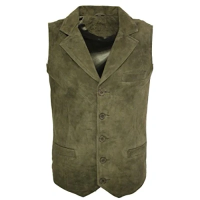 Infinity Leather Mens Classic Smooth Goat Suede Waistcoat Exeter Green Size 4XL
