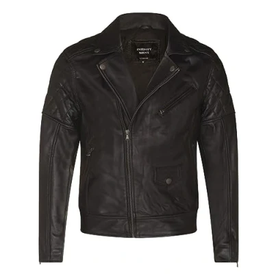 Introducing our super stylish men's Leather Biker Jacket, a captivating piece that effortlessly merges classic design with contemporary charm. Crafted from high-grade sheep nappa leather, this jacket promises exceptional quality and sophistication. Classic topstitch quilt detail adds a timeless and refined touch to the overall design. Sturdy YKK zip front with a stand collar and stud closing ensures both style and practicality. Raglan style shoulder panels top stitched for a sleek and streamlined appearance. 4 zip pockets on the body provide functional and trendy storage options, while buckled waist adjusters offer a personalized fit. Zipped cuffs add a biker-inspired flair, complementing the jacket's overall edgy look. Fully lined interior features two leather-trimmed pockets, including a zipped one, providing ample space for your essentials. Embrace the excitement of our Leather Biker Jacket, designed to make a bold statement and elevate your style to new heights. With its stunning design and exceptional craftsmanship, this jacket is the perfect addition to your wardrobe for a touch of rebellious elegance