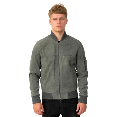 Infinity Leather Mens Goat Suede MA 1 Bomber Jacket Auckland Grey Size Large