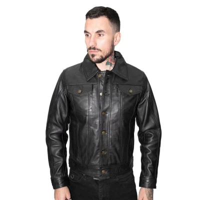 Infinity Leather Mens Men’s Retro Trucker Jacket Constantine Black Size X Small