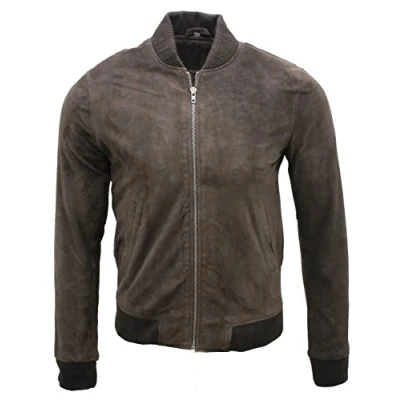 Inspired by the MA-1 style of the 50s, this jacket is an iconic staple of causal outfits and has only gotten more popular as time goes by. We feature this jacket in our quality goat suede for a lightweight feel and smooth appearance which is distinct to suede, the jacket also features elasticated hems and cuffs for added comfort and a tapered appearance. This jacket is kept minimalistic with additions to the front restricted to two subtle waist pockets for that clean bomber look. We recommend pairing this with jeans for a timeless outfit, however this is a very versatile garment, made even more so by the wide range of colourways we offer this jacket in and can therefore feature in practically any outfit you choose. • Made of genuine goat suede • Elasticated hems and cuffs for extra comfort • Classic YKK zip on the jacket front • Features in a range of colours • Includes pockets integrated into the jacket lining and two exterior waist pockets