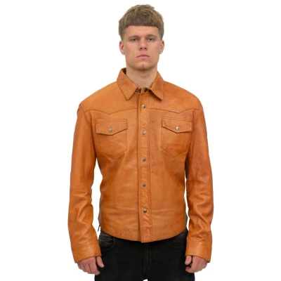 Infinity Leather Mens Retro Shirt Jeans Jacket Beijing Tan Size X Small