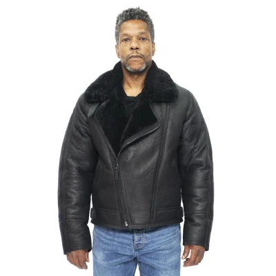 Infinity Leather Mens Sheepskin WW2 Bomber Jacket Tucson Black Size 2XL