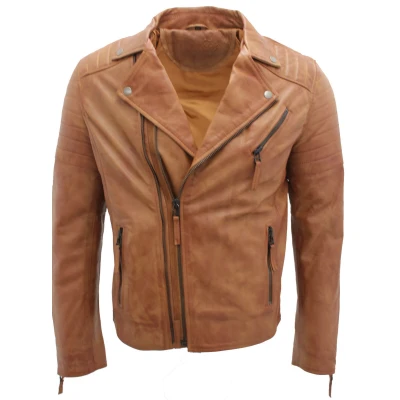 Infinity Leather Mens Slim Fit Brando Style Cross Zip Biker Jacket Tan Size X Small
