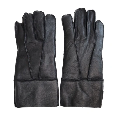 Infinity Leather Unisex Black Sheepskin Gloves with Roll Up/Down Cuff