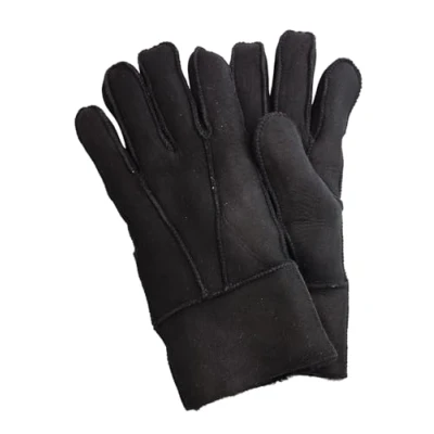Infinity Leather Unisex Black Sheepskin Suede Gloves with Roll Up/Down Cuff
