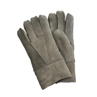 Infinity Leather Unisex Grey Sheepskin Suede Gloves with Roll Up/Down Cuff Size Large