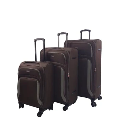 Infinity Leather Unisex Soft 3 pcs Luggage 8 Wheel Light Travel Suitcase Set Brown Nylon One Size