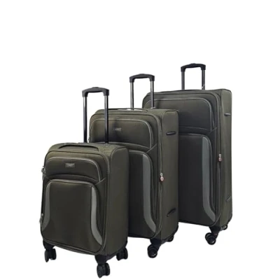 Infinity Leather Unisex Soft 3 pcs Luggage 8 Wheel Light Travel Suitcase Set Khaki Nylon One Size
