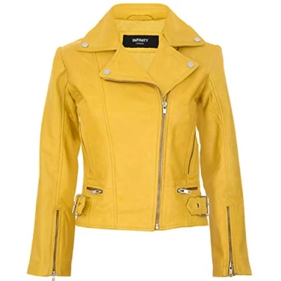Infinity Leather Womens Biker Jacket Stockholm Yellow Nappa Size 14 UK