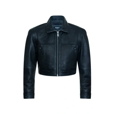 Introducing a wonderful, cropped black leather jacket, crafted from ultra-soft and supple sheep nappa leather. This stylish piece features a chunky YKK zip that extends to a high stand collar, which can be folded over or stood up for wind protection. Two open pockets at the waist and shirt-style gauntlet cuffs with press studs add functionality and flair. The interior is fully lined in satin, with two additional leather-trimmed pockets and one zipped for security and the other open for easy access. Ultra-soft sheep nappa leather, Chunky YKK zip with high stand collar, Two open waist pockets, Shirt-style gauntlet cuffs with press studs, Fully lined in satin with extra interior pockets.