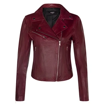 Infinity Leather Womens Classic Biker Brando Jacket Baku Burgundy Nappa Size 18 UK