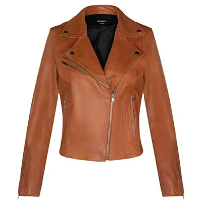 Infinity Leather Womens Classic Biker Brando Jacket Baku Tan Nappa Size 12 UK