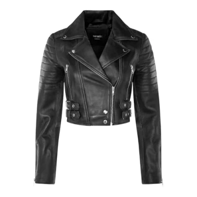This jacket is made of ultra-soft leather and finished in our premium nappa which sports a contemporary cropped length and form fitting design. We’ve introduced features such as quilted shoulders and extended vertical zip pockets with the intention to give this jacket a distinctive chic look. To ensure comfort when wearing our jacket, we’ve introduced zipped cuffs that allow you to roll the jacket sleeves up and a buckle adjustable waist for tightening to achieve your desired look and feel. In classic Brando style this jacket features a wide notched lapel which has been a staple addition for adding flair to any jacket style. • 100% premium ultra-soft nappa leather • Premium Satin lining • Furnished with off centred YKK zip fastening and wide notched lapel • Features 2 zipped exterior pockets and quilted detailing.