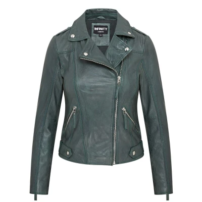 Infinity Leather Womens Green Biker Jacket Denver Size 10 UK