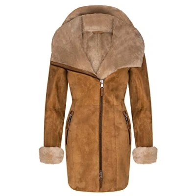Infinity Leather Womens Merino Sheepskin Hooded Coat Antioch Tan Size 16 UK