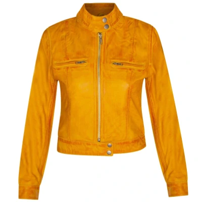 Infinity Leather Womens Plain Moto Biker Jacket Braga Yellow Size 20 UK