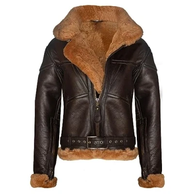 AmazonTraditional style sheepskin flying jacket Handcut using British tanned skins Belt at Waist Line Reinforced Sheepskin Collar with collar straps Angled Side Pockets
