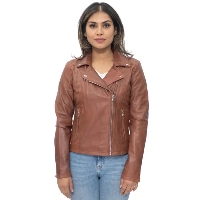 Infinity Leather Womens Tan Biker Jacket Sacramento Size 14 UK