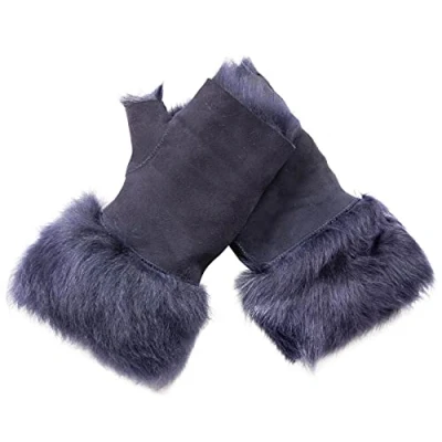 Infinity Leather Womens Warm Winter Shearling Navy Toscana Fingerless Cuffs Suede Sheepskin Mitten Gloves
