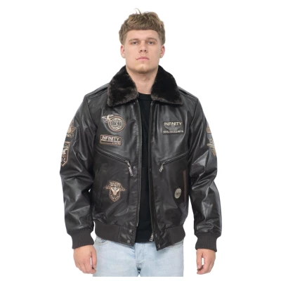 Infinity Men's Brown Cow Hide Leather Flight Bomber Jacket with Detachable Collar 2XL